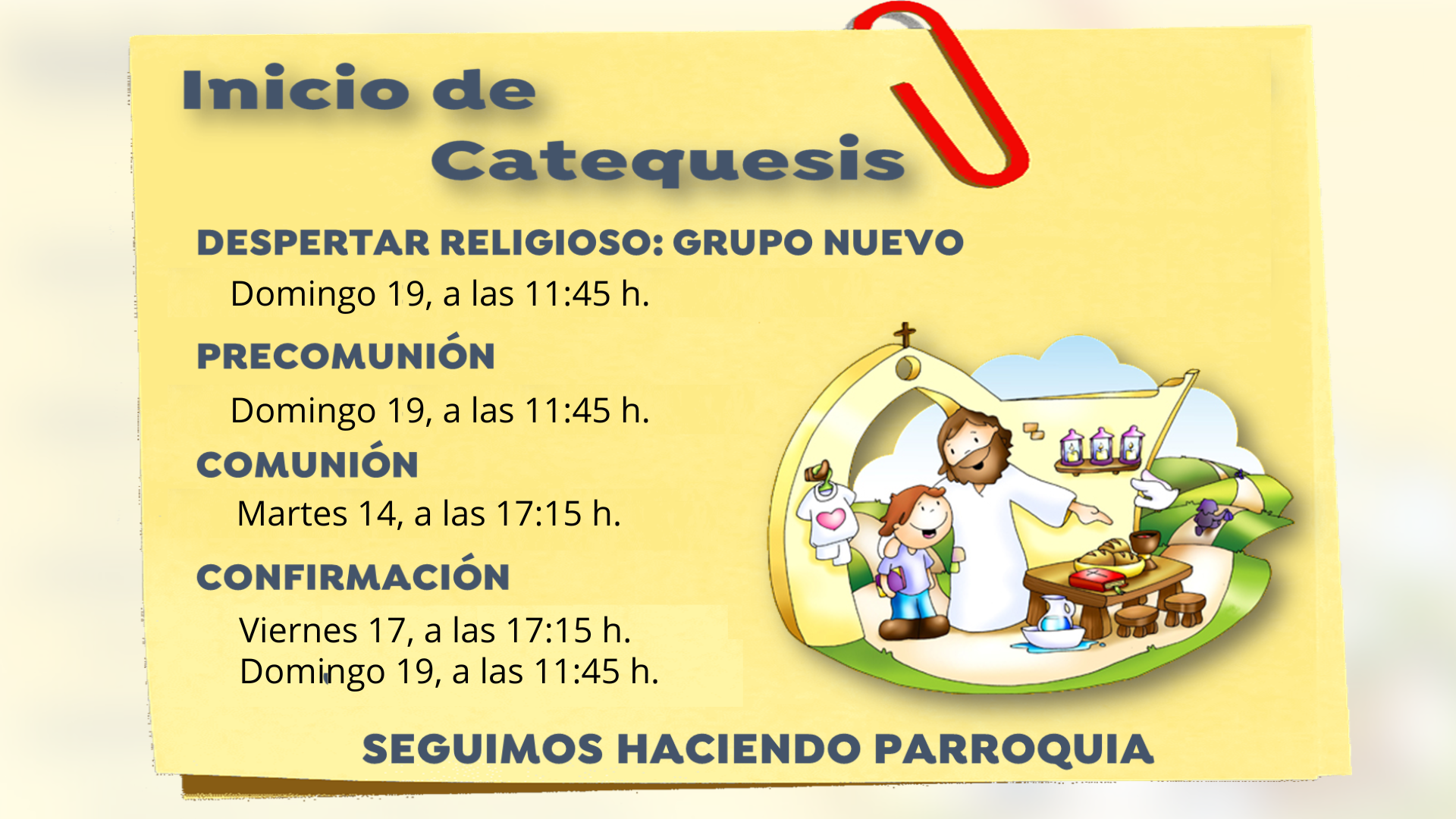 🕰️ Eucaristías: 9,oo h., 12,oo h., 13,oo h. y 19,oo h.